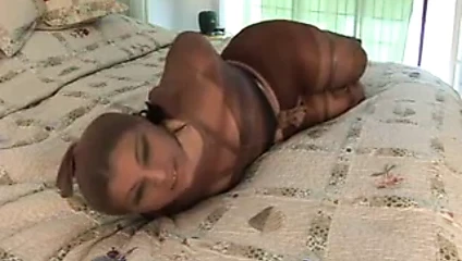 Kristina ist gefesselt und umhüllt, bläst und wird in Strumpfhosen gefickt