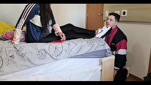 Sei nett, mein junge und lass deine stiefmutter deinen schwanz reiten